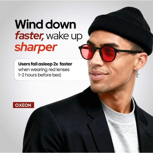 Red lenses block 99% of blue light so your brain unwinds naturally for deeper sleep.